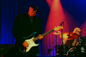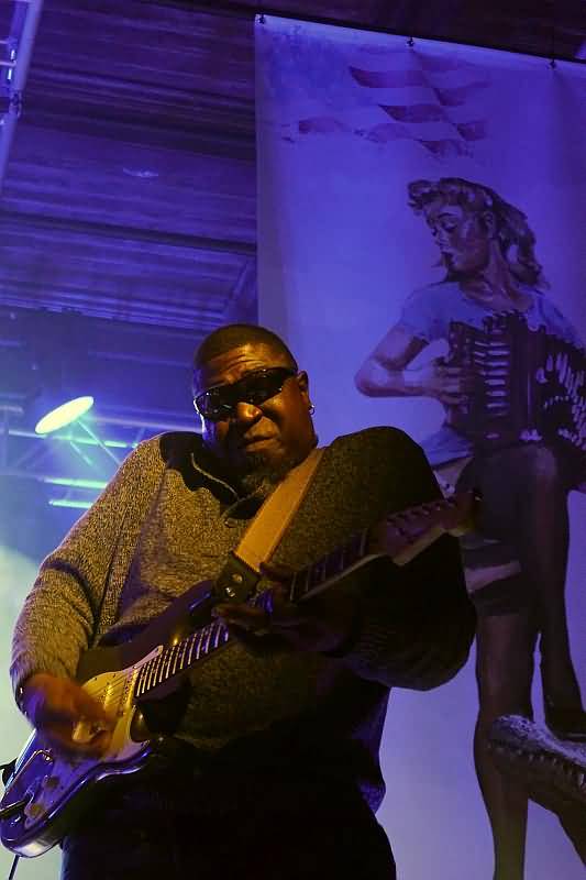 Und das fand in Gestalt von The Roddie Romero Trio feat. Lee Allen Zeno And Jermaine Prejean aus Lafayette im US-Bundesstaat Louisiana statt. Zunächst kletterte ein schwergewichtiger afro-amerikanischer Mann (Jermaine Prejean) hinter das Schlagzeug und links auf der Bühne tauchte ein dem nicht sehr viel hinterher stehender Mann (Allen Zeno) am Bass auf. Spannung… dann startete der Drummer einen Groove, der mir bereits nach zwei Takten sämtlichen Sauerstoff aus dem Körper zu ziehen schien und als dann noch der Bass einsetzte, hatte ich geradezu Wasser in den Augen. So was kann man nicht lernen und so was hatte ich in der Form bzw. Klasse in Europa noch nie gehört. Bereits zu diesem frühen Zeitpunkt standen bei mir die Nacken-Härchen ganz nach oben und Gänsehaut pur war angesagt. Nur kurze Zeit später gesellte sich dann auch Roddie Romero hinzu, der sich ebenfalls als absoluter Meister seines Fachs erwies. Das war Cajun-Blues der feinsten Art mit gar nicht mal sooo viel gespielten Noten auf der Gitarre, aber diejenigen, die aus den Boxen kamen, waren dafür umso intensiver. Nach etwas mehr als der Hälfte des Gigs wechselte Romero zum Akkordeon und lieferte auch damit sowie der Unterstützung seiner Band eine supergeile Show ab. Dem RockTimes-Team war bis zu diesem Abend kein Song, kein Album, geschweige denn die Namen der Bandmitglieder bekannt, was die Musiker aber keinesfalls davon abhielt, einen erstklassigen sowie nachhaltigen Eindruck zu machen und dafür zu sorgen, dass man sie so schnell nicht vergessen wird. Eine absolute Entdeckung.