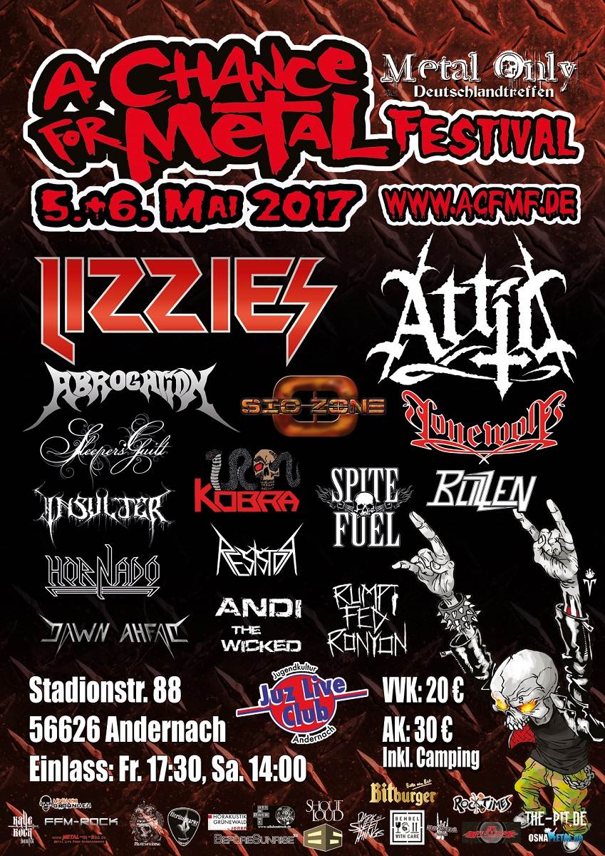 Am 5. und 6. Mai 2017 findet im Juz Live Club in Andernach zum elften Mal das 'A Chance For Metal Festival', kurz 'ACFMF', statt.