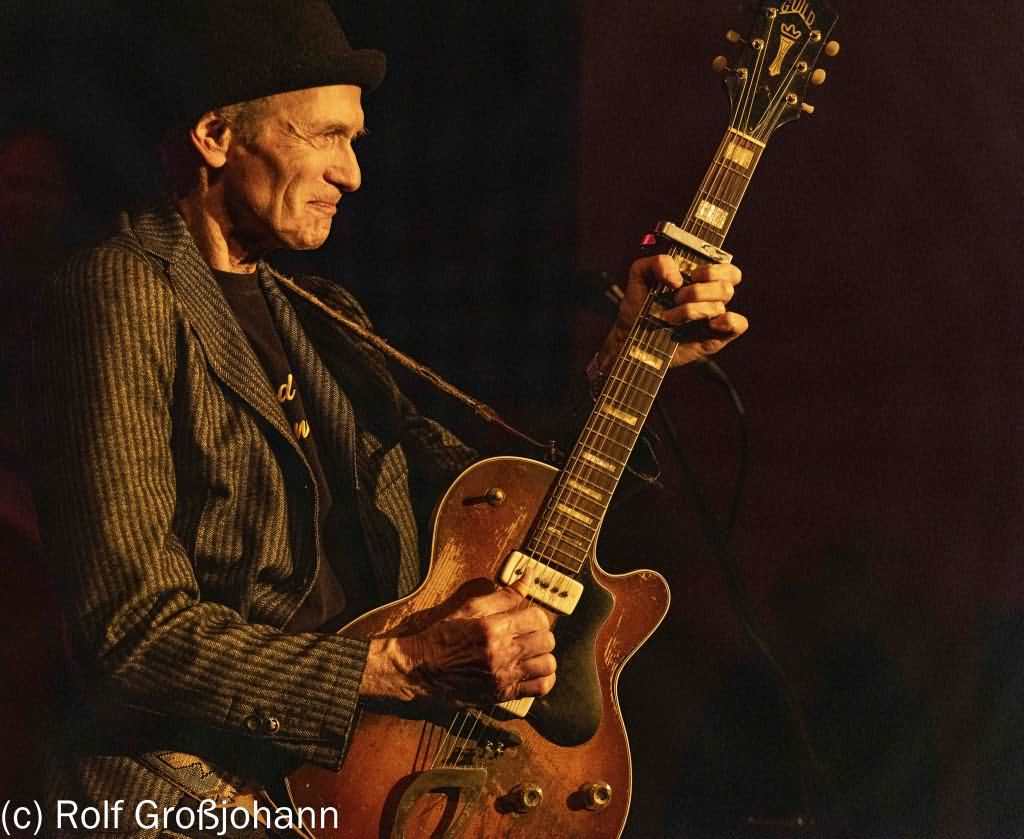 Seine heisere Stimme ist nicht im wahrsten Sinne des Wortes ’schön', passte hier aber hervorragend zu den gespielten Titeln.
