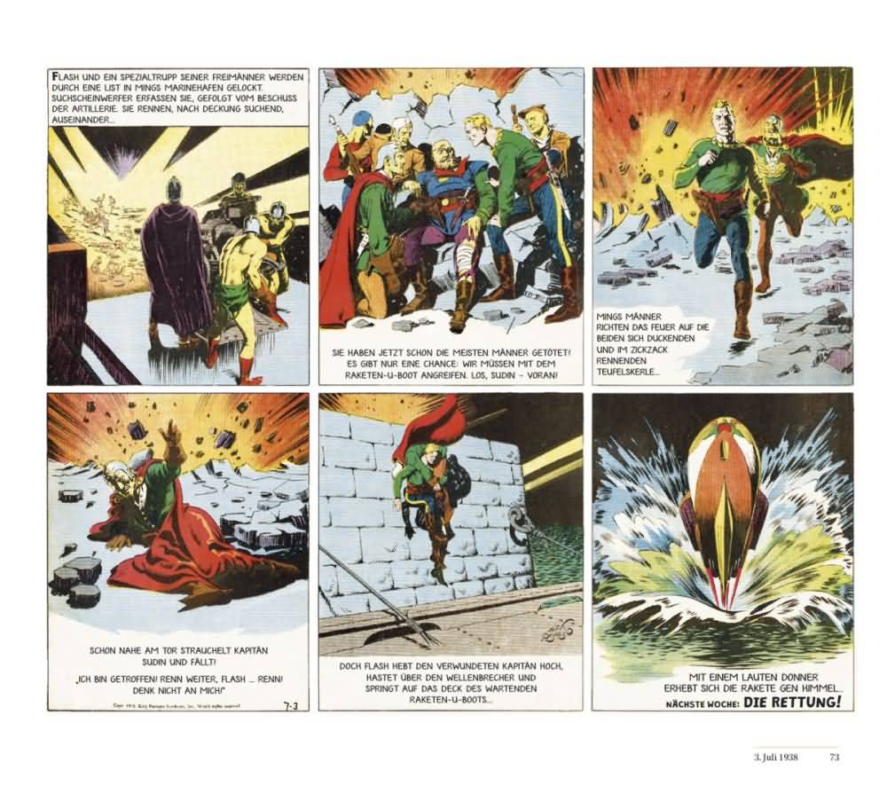 Während Flash Gordon verschiedene Medien eroberte und populärer wurde, begann in Europa der Krieg. Da mich die in den 30ern aufblühende Szene der Pulp-Heftchen und die Comichelden fasziniert, habe ich mich schon mehrfach gefragt, wie hat sich das auf die Geschichten ausgewirkt. Was haben die Autoren gedacht, wenn sie Storys von Helden mit Strahlenpistolen ersannen, während anderswo echte Waffen sprechen und dies nicht nur in einem lokalen Konflikt, sondern in einem Weltkrieg.