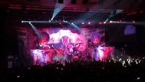 Das neue Album "Brotherhood Of The Snake", das am 28.10.2016 erschienen ist, stand logischerweise im Vordergrund, wobei ich (und auch andere) noch nicht mit dem Material vertraut waren. Das Backdrop mit dem Cover sah klasse aus, insbesondere durch die Totenschädel mit den leuchtenden Augen.