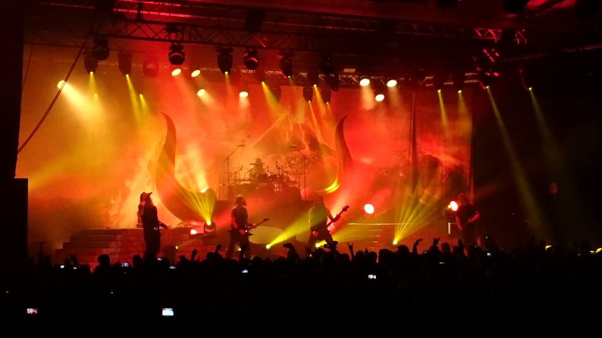 Das neue Album "Brotherhood Of The Snake", das am 28.10.2016 erschienen ist, stand logischerweise im Vordergrund, wobei ich (und auch andere) noch nicht mit dem Material vertraut waren. Das Backdrop mit dem Cover sah klasse aus, insbesondere durch die Totenschädel mit den leuchtenden Augen.
