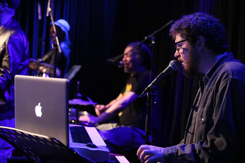 André George und Band traten bei diesem Gig in Sextett-Besetzung auf. Neben Sänger und Gitarrist André George sorgten Keyboarder Jann Tholen, Trompeter und Flügelhorn-Bläser Heiko Nitsch, Bassist Rainer Josten, Schlagzeuger Leo Murphy sowie Chorsängerin Caro Franitza für infizierende Vibes in der Location.