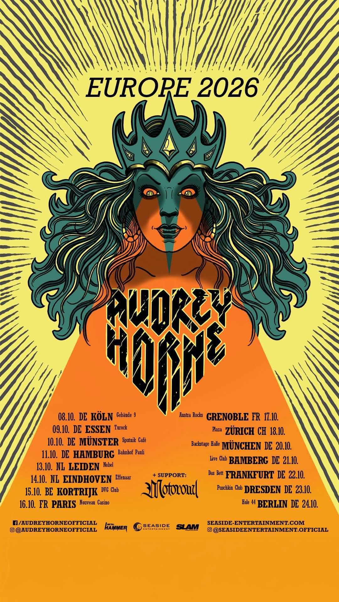 RockTimes > Tourtermine (alphabetisch) > 2026/10 > Audrey Horne & Motorowl (Support) im Oktober 2026 auf Tour
