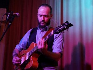 Die Lounge war an diesem Samstag-Abend sehr gut gefüllt und dem anwesenden Publikum gefiel es offensichtlich sehr gut. Im Gespräch vor dem Konzert hatte Marceese mir noch mitgeteilt, dass er wohl auch wieder etwas von seiner alten Liebe Kiss spielen werde. Worauf ich ihn nach der Show noch einmal ansprach, da mir eine solche Nummer während des Konzerts nicht aufgefallen war. Falsch, wie sich dann herausstellte, denn er hatte tatsächlich einen Titel aus dem Soloalbum von Peter Criss auf die Bretter gezaubert. Einige andere Stücke hatten deutlich psychedelische Züge, wobei die Grundausrichtung des Hauptstädters immer noch ganz klar bei den Genres Alternative Country und Americana zu finden ist. Auch sprachlich setzte sich der Musiker keine Grenzen, sodass neben den hauptsächlich englisch gebrachten Tracks mindestens eine gute Handvoll an deutschen Lyrics auftauchten. Ein sehr abwechslungsreicher Abend also mit einem Musiker, der auch nicht davor zurückscheut, sozialpolitische Brennpunkte anzusprechen.