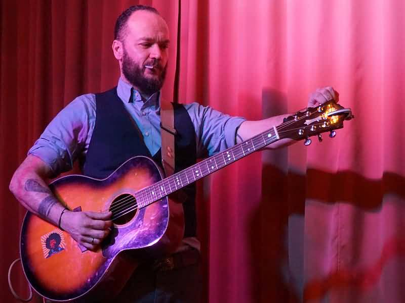 Die Lounge war an diesem Samstag-Abend sehr gut gefüllt und dem anwesenden Publikum gefiel es offensichtlich sehr gut. Im Gespräch vor dem Konzert hatte Marceese mir noch mitgeteilt, dass er wohl auch wieder etwas von seiner alten Liebe Kiss spielen werde. Worauf ich ihn nach der Show noch einmal ansprach, da mir eine solche Nummer während des Konzerts nicht aufgefallen war. Falsch, wie sich dann herausstellte, denn er hatte tatsächlich einen Titel aus dem Soloalbum von Peter Criss auf die Bretter gezaubert. Einige andere Stücke hatten deutlich psychedelische Züge, wobei die Grundausrichtung des Hauptstädters immer noch ganz klar bei den Genres Alternative Country und Americana zu finden ist. Auch sprachlich setzte sich der Musiker keine Grenzen, sodass neben den hauptsächlich englisch gebrachten Tracks mindestens eine gute Handvoll an deutschen Lyrics auftauchten. Ein sehr abwechslungsreicher Abend also mit einem Musiker, der auch nicht davor zurückscheut, sozialpolitische Brennpunkte anzusprechen.