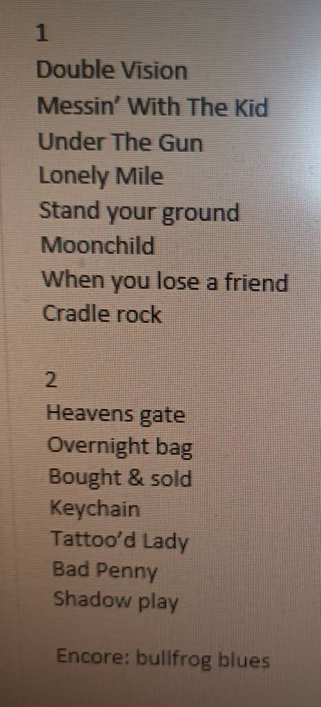 Die Band enterte die Bühne und es geht mit "Double Vision" gleich in die Vollen, gefolgt von "Messin' With The Kid", ein Titel von Junior Wells, hier allerdings ohne Mundharmonika.