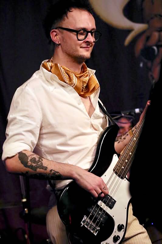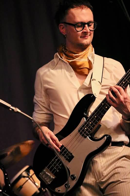 Emma Jonson, die Frau an den schwarzen und weißen Keyboard-Tasten, spielte sich nicht alleine durch ihre Alleingänge in die Herzen der Zuschauer. Ihre Soli waren eine faszinierende Mischung aus ganz verschiedenen Stilen und bei den Balladen begleitete sie Greta Valenti mit feinfühligen Piano-Läufen. Super! Sie gab dem Band-Sound eine wunderschöne Intensität. Wahrlich meisterhaft bediente Stephen Mildwater seinen Tieftöner. Er setzte sich durch fließende Fretboard-Fahrten nachhaltig in Szene und glänzte durch seine Flexibilität auf den dicken Saiten. Toll!
