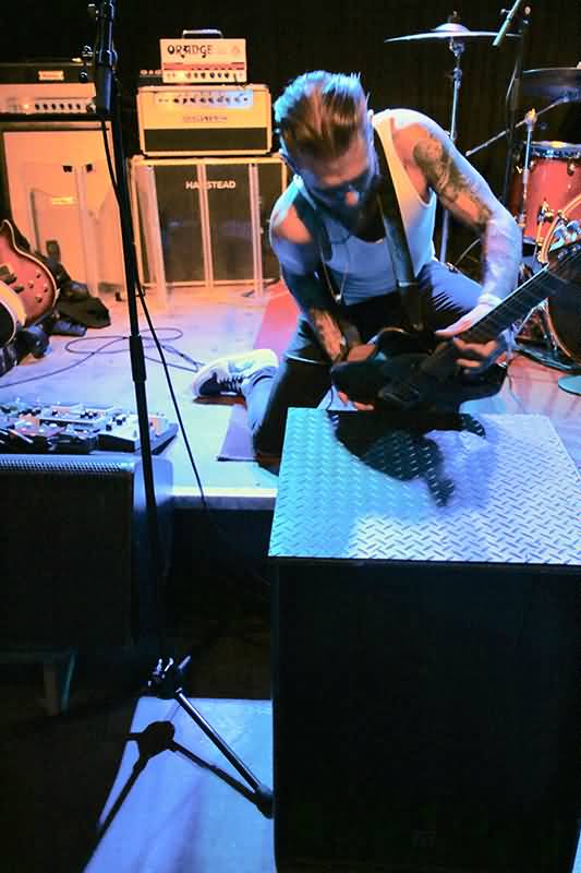 Die beiden Gitarristen begeisterten in ihren Soli auch dadurch, dass Ben Poole einmal alleine und in der Zugabe dann beide Saiten-Zauberer die Bass-Boxen vor der Bühne enterten. Klasse Showeinlage.