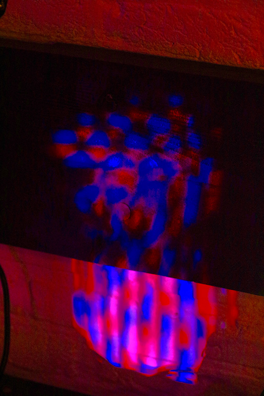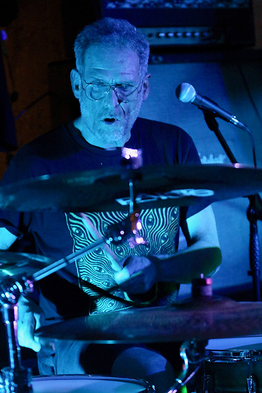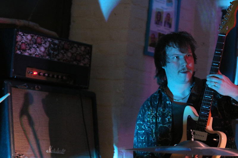 Dann "Assemblage". Sphärisch-relaxt schwebte das Trio über den Wolken und was folgte war ein herausragender Ausflug in die Weiten der Psychedelic. Dabei machte Bassist Huibert der Weduwen in besonderer Weise auf sich aufmerksam. Er drehte an den Knöpfen seiner Effektgeräte und erzeugte mit seinem Tieftöner psychedelische Sounds, an denen selbst ein Jimi Hendrix seine Freude gehabt hätte. Beide Daumen hoch für den Bass-Spezialisten. Einen anderen Klang-Kosmos kreierte Huibert der Weduwen, als er in "Neugier" das Wah Wah-Pedal aktivierte. Aus den Lautsprechern tönten Sounds mit Wow-Effekt. Nach einer verlangsamten Phase hieß es schnell, schneller, Bismut.