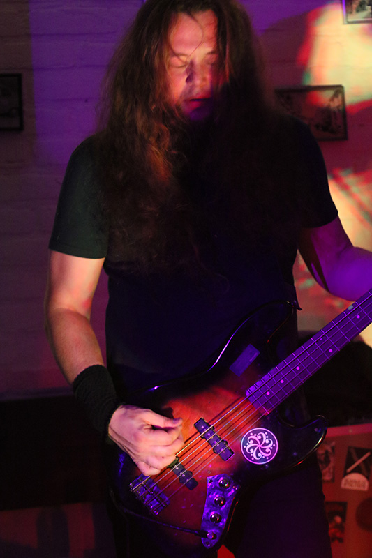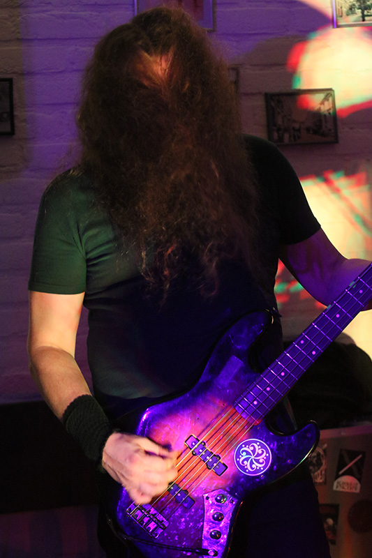 Peter Dragt fragte, ob das Publikum Lust auf Metal habe. Klar, her damit. Getanzt wurde schon von den ersten Konzert-Minuten an. "Predvídanie" übertraf mit seinem metallischen Outfit noch den Stoner Rock. Aber Bismut wäre nicht Bismut, denn auch hier hielt die Psychedelic Einzug. Und das gleich in doppelter Form, denn sowohl Gitarrist Nik als auch Bassist Huibert der Weduwen sorgten gemeinsam für psychedelische Feinkost im Griether Hanselädchen. Das Publikum applaudierte begeistert.