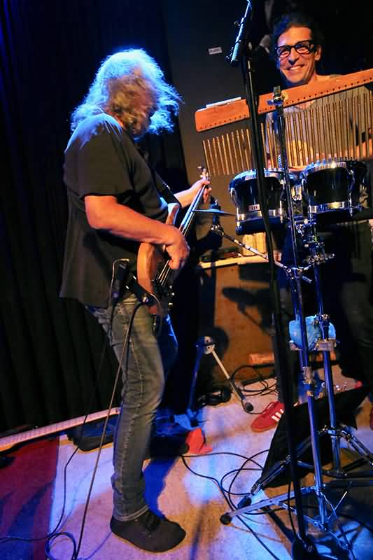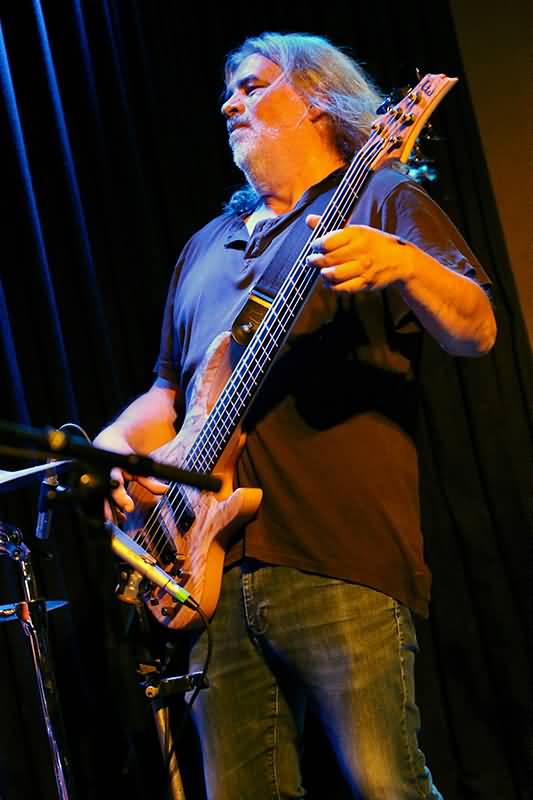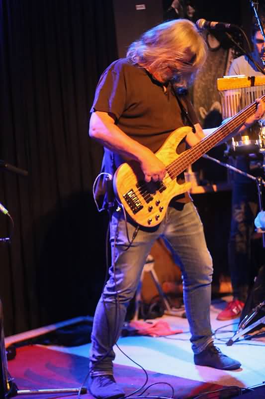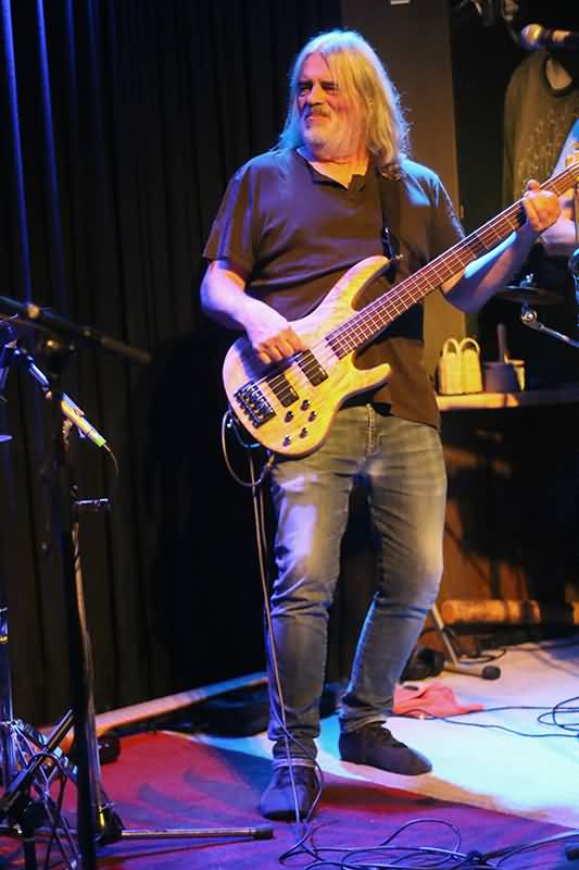 Sergii Chernenko nutzte seinen großzügigen Platz auf der Bühne aus. Er war sehr viel unterwegs und unterstrich die von Charly Schnell getrommelte Rhythmik durch eingehendes Hüpfen. Für ein Solo positionierte er sich auf der vor der Stage befindlichen Bassbox. Bassist Patrik Barzen, der nicht nur durch einen klasse Chorgesang überzeugte, zupfte die fünf dicken Saiten seines Tieftöners – übrigens ein Hingucker – mit viel Energie beim Rock und Sanftheit in den Balladen und tanzte auch zur Musik, die bei vielen Anwesenden zur Aktivierung der Fußwippe führte.