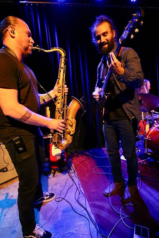 Niklas Scharge auf der E-Gitarre, Sergii Chernenko am Saxofon sowie auf der Klarinette und der Percussion-Mann Peter Niemeier sorgten mit ihren Soli für besondere Aufmerksamkeit. Das Publikum konnte feststellen, dass Sergii Chernenko dem Jazz verbunden war, allerdings arrangierte er seine Alleinfahrten immer wieder auch in den Gefilden des Rock an, sodass man bei seinen Soli auch von Fusion sprechen konnte.