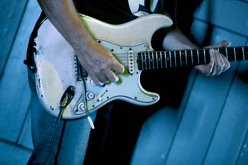 Ja, der Ideenreichtum der Musiker begeisterte ein ums andere Mal. Thomas Blug sowie Ben Granfelt beamten sich mit ihren über sechzig Jahre alten Fender Stratocaster bei ihren zahlreichen Soli phasenweise bis in die (Achtung: Wortspiel) Strato-Sphere. Oft den Tremolo-Hebel aktiviert, kam es auch zu einigen Wah Wah-Pedal-Einsätzen, die dann auch den Funk anheizten. Beim Kreieren von Klängen mit diesem Bodenpersonal befand sich Martin Engelien in bester Gesellschaft, denn er liebt den Funk auf geslappt-furiose Weise.