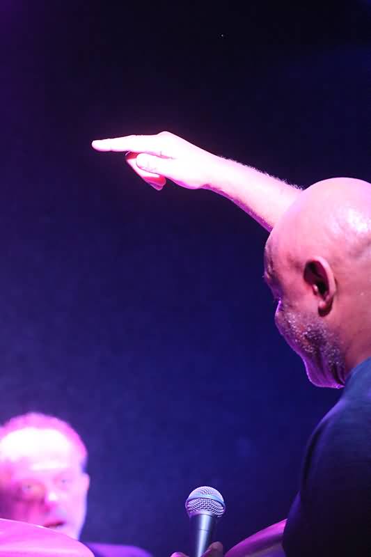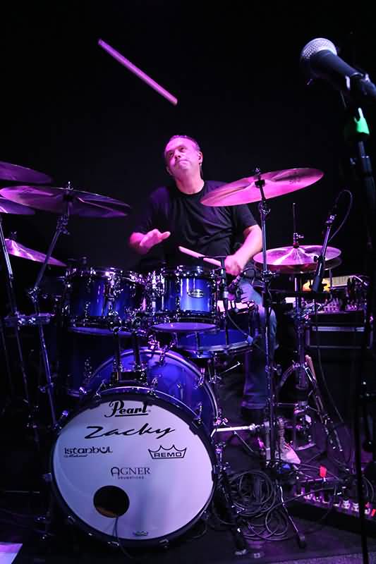 In eine andere musikalische Richtung bewegte man sich dann mit dem Instrumental "Party In Simon’s Pants". Dieses Lied geht zurück auf Steve Lukather, in dessen eigener Band auch Simon Phillips trommelte. Was lag da näher, als in diesem Fusion-Stück Zacky Tsoukas für sein überwältigendes Solo Zeit zu geben. Hammer, was er aufbot. Differenzierte Rhythmik, Trommeln nur mit den Händen gespielt, im Stehen herrliche Variationen auf den Becken, auf einer der Metallschalen kuriose Klänge erzeugen und dann flogen während des Drummings auch noch die Sticks durch die Luft. Zacky Tsoukas, die Kraftquelle der Band, bot eine atemberaubende Show auf seinem Kit.