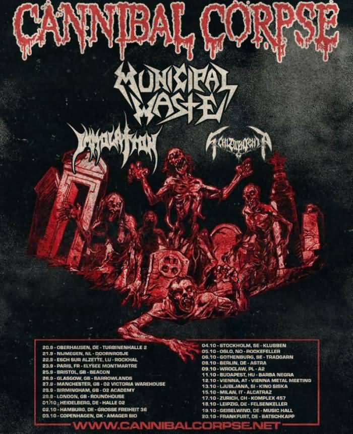 Cannibal Corpse kommen im September / Oktober nach Europa und bringen Municipal Waste, Immolation und Schizophrenia mit.