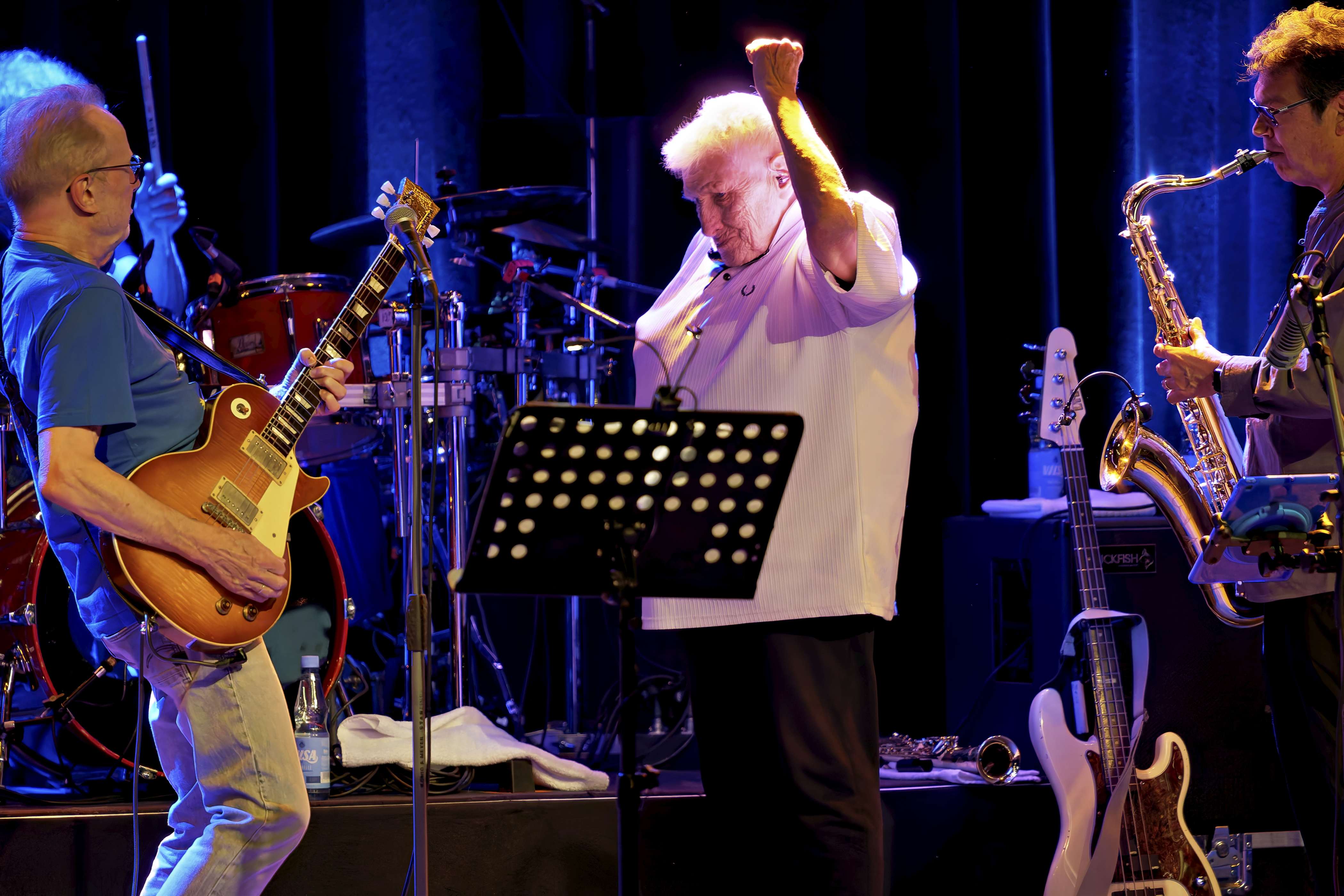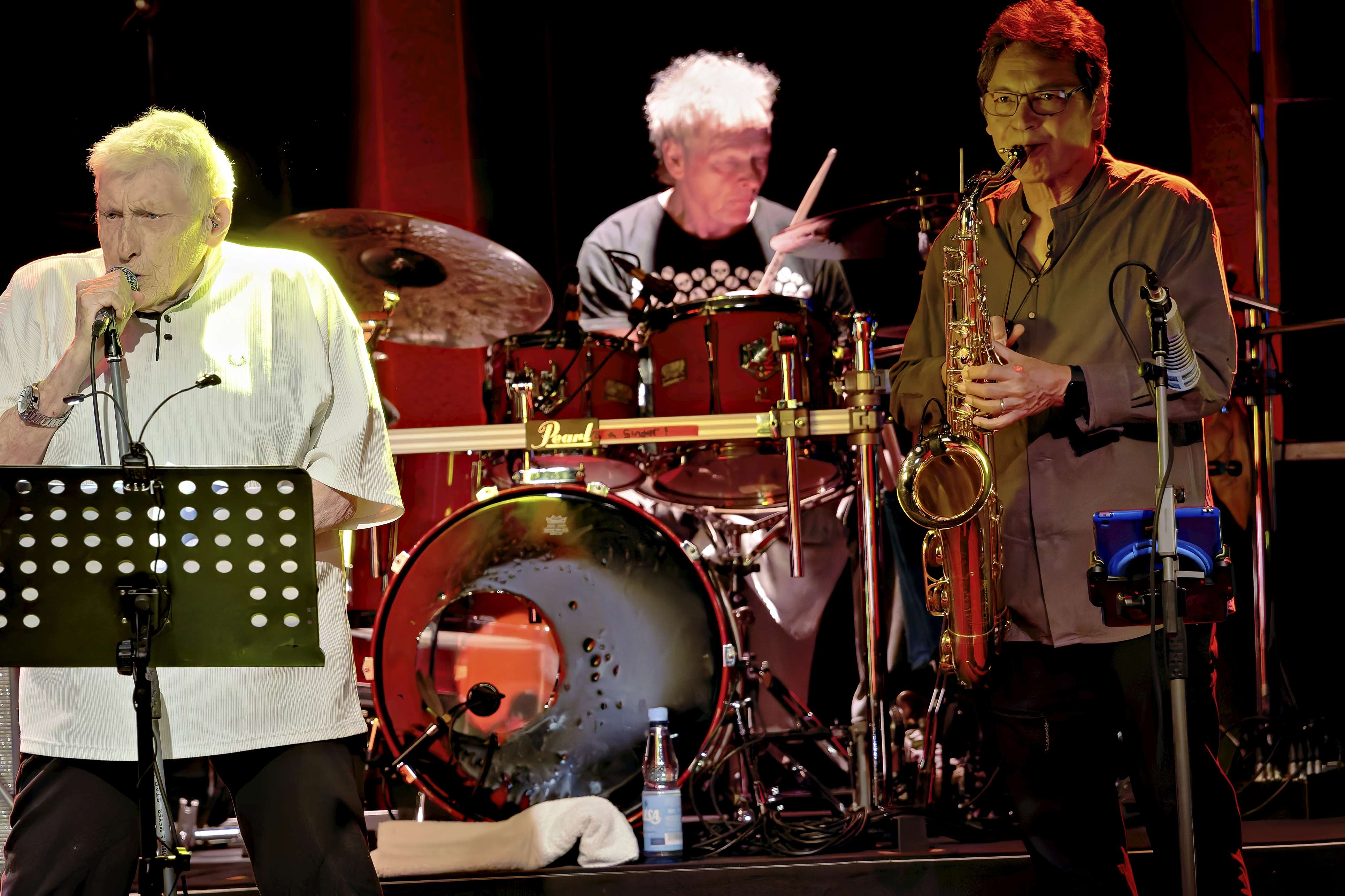 Wenn etwas jung hält, dann ist das allerdings Jazzmusik, der älteste aktive Jazzschlagzeuger der Welt ist immerhin 104 Jahre alt (Leo Pearlstein). Und so ist auch heute der unnachahmliche Chris Farlowe zu erleben, der wohl kaum in einer anderen deutschen Stadt so häufig aufgetreten ist wie in Oldenburg. Farlowe ist ’nur' 20 Jahre jünger als Leo Pearlstein, steht immer noch hinter dem Mikrofonständer, treibt mit selbigem punktuellen Schabernack, wie er grundsätzlich nichts von seinem Humor eingebüßt hat und begeistert bevorzugt in den bluesigen Passagen als 'The Voice', wobei der inzwischen fehlende Druck und eine gewisse Brüchigkeit sein Alter nicht verhehlen können.