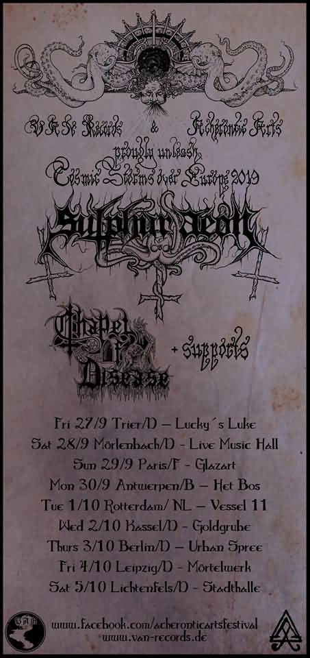 Unter dem Motto Cosmic Storms Over Europe 2019 gehen Sulphur Aeon und Chapel Of Disease gemeinsam auf Tour: