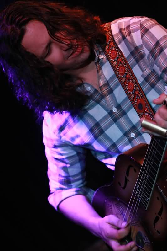 Das auf dem Verstärker positionierte Bottleneck hatte schon einige Zeit auf seinen Einsatz gewartet und bei "Never Gonna Be The Same" war es dann endlich soweit. So stand es unmittelbar nach der Pause dann im Mittelpunkt des Geschehens. Es gab Davy Knowles sozusagen exklusiv, denn solo präsentierte er zwei Tracks seiner EP "1932.". Zu Beginn war die Eigenkomposition "First Worlds Of A Changing Man" die Grundlage der stimmungsvollen Metallröhrchen-Fantasien. Schon vor der nächsten Nummer mit der Dobro gab es Beifall, ohne dass ein Ton gespielt wurde. Davy Knowles erwähnte Rory Gallagher und in Anlehnung an diesen unvergessenen Gitarristen war es der Tony Joe White-Song "As The Crow Flies", der für weitere Begeisterung sorgte. Der Protagonist konnte auch in der Rolle des Bewahrers der Blues-Tradition voll überzeugen.