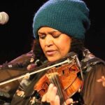 Der musikalische Streifzug führte auch in ein sehr kaltes Land, in dem die Einwohner ganz viele verschiedene Worte für gefrorenes Wasser haben. "Nilas" bezeichnet eine der Eisschichtarten und Dede Priest setzte zur Violine auch ein Stompboard ein. Ein immens intensiver, epischer Blues.