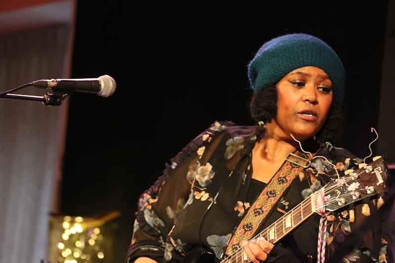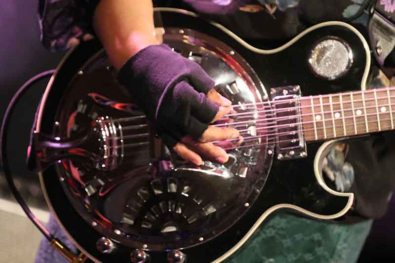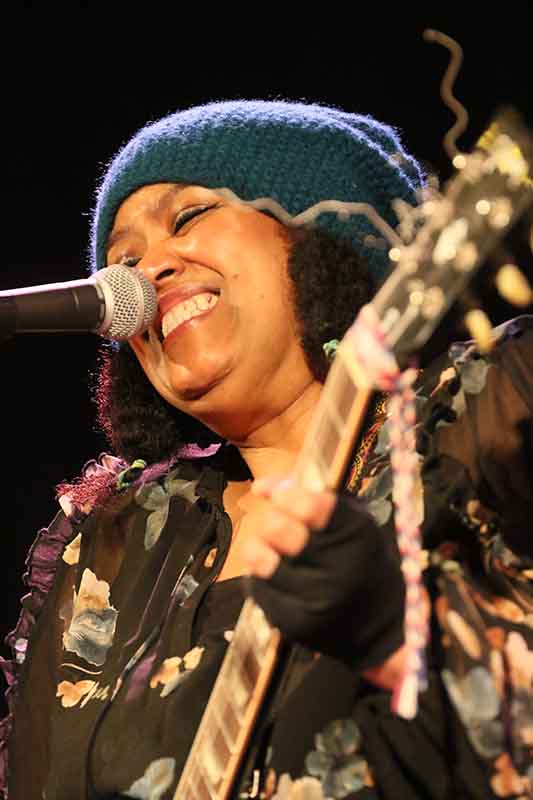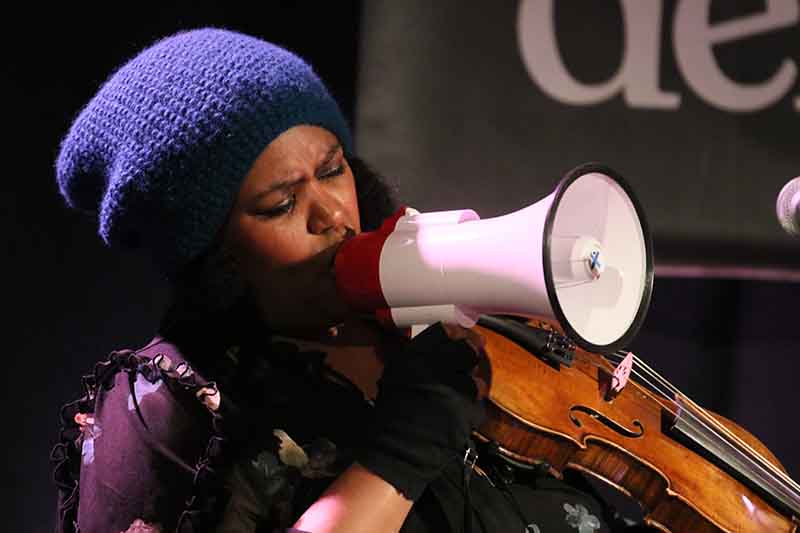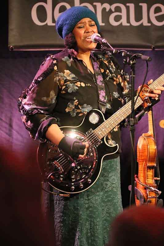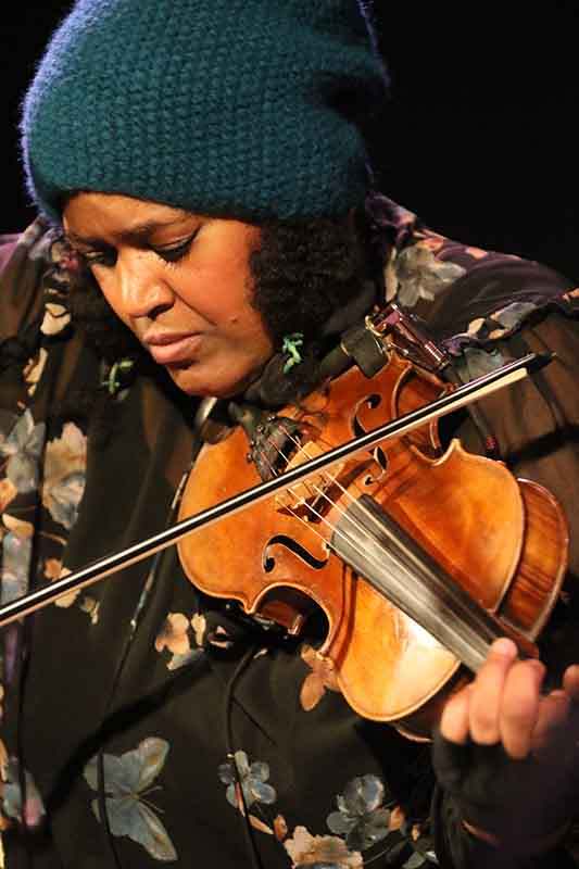 Der musikalische Streifzug führte auch in ein sehr kaltes Land, in dem die Einwohner ganz viele verschiedene Worte für gefrorenes Wasser haben. "Nilas" bezeichnet eine der Eisschichtarten und Dede Priest setzte zur Violine auch ein Stompboard ein. Ein immens intensiver, epischer Blues.