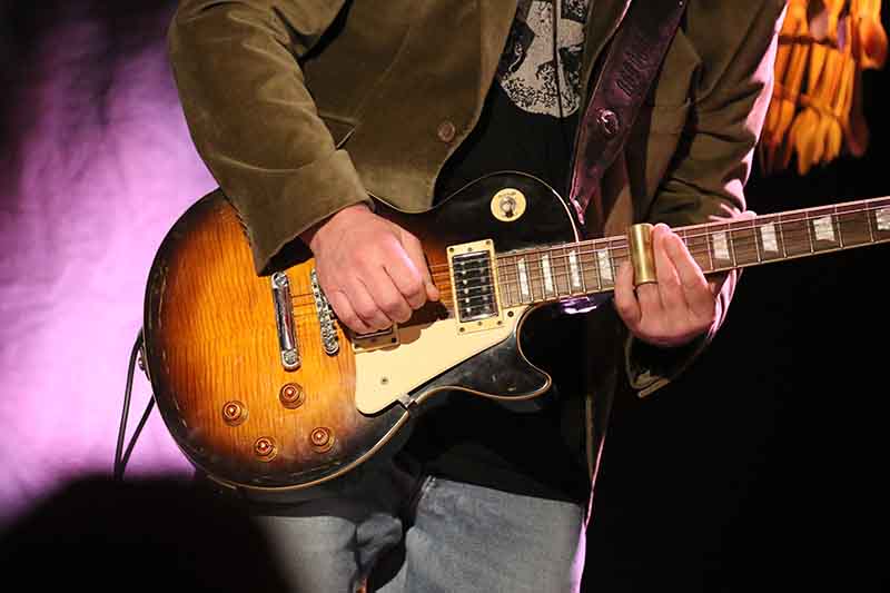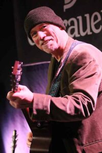 Johnny Clark wechselte je nach Song-Stimmung zwischen einer E-Gitarre oder einem akustischen Sechssaiter und er bot dem Publikum mit dem Bottleneck viele Slide-Sounds.