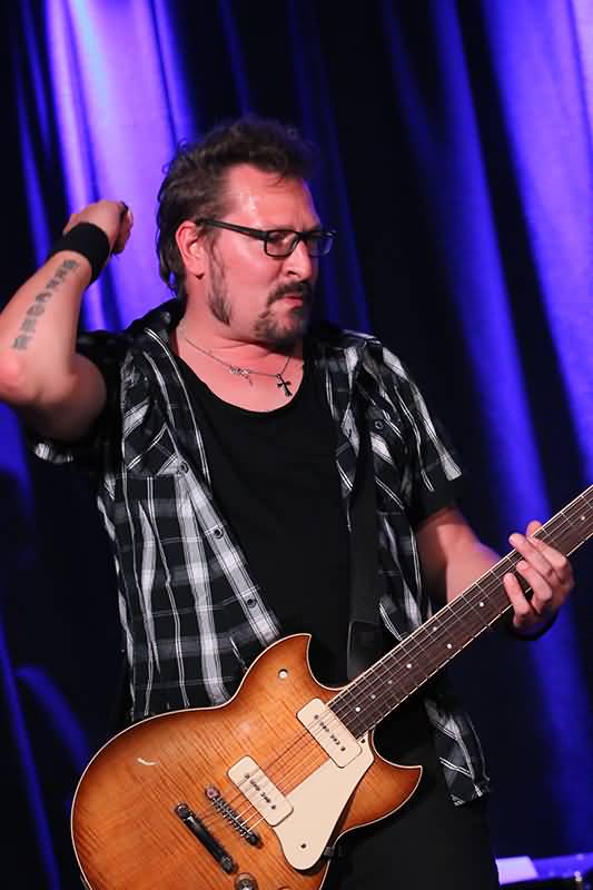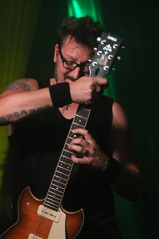 Dennis Hormes' fantastischen Gitarren-Sounds zu lauschen, war die eine Sache. Mit welchen, phasenweise halsbrecherischen Techniken er diese erschuf, war die andere Sache und ließ einen zum Teil atemlos staunen. Er schöpfte aus einem schier nicht zu leerenden Fass der Fantasien und auch ihm zollte man bei seinen vielen Soli anerkennenden Beifall. Dennis Hormes hatte wieder einmal alle Varianten der Sechssaiter-Faszinationen drauf. Da war kraftvolles Riffing fast schon so etwas wie Normalität.