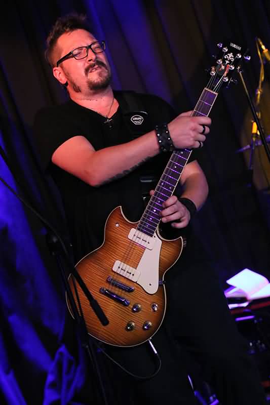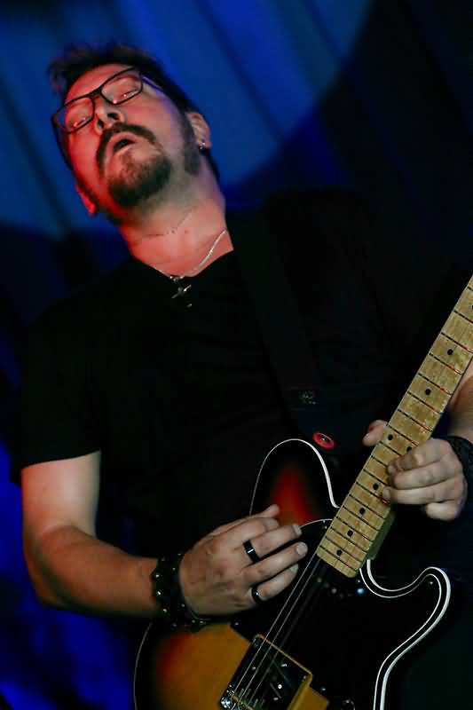 Dennis Hormes, der Irrwisch oder coole Performer der sanften Zurückhaltung, kredenzte eine Sechssaiter-Fantasie nach der anderen. Seine Klang-Kreationen mündeten nicht selten in der Psychedelic und in manchen Situationen ließ er sein Arbeitsgerät durch eine spezielle Bearbeitung der Saiten klingen wie die Rückkopplungen eines Jimi Hendrix. Bei "Word Up" zauberte er durch Peter Greens "Black Magic Woman" einen romatischen Teil. Dennis Hormes veranstaltete so etwas wie ein Festival auf dem Fretboard.