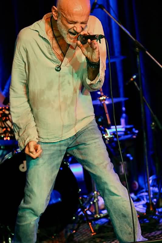 Ettore Olla trommelte wie ein Wirkelwind, entwickelte viele verschiedene Grooves, die immer wieder zumindest die Fußwippe aktivierten. Durch sein Trommeln brachte er – gemeinsam mit Günter Asbeck – Bewegung in die Menge vor der Bühne. Selbstredend kamen seine hoch differenzierten Drum-Soli bestens an und auch er erntet viel Applaus.