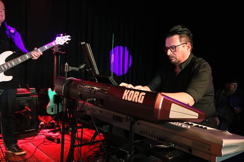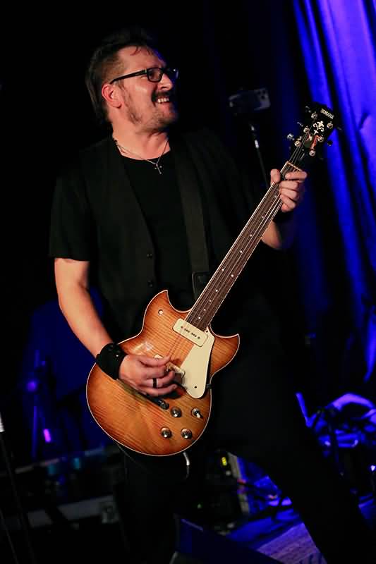 Für das Publikum spielte er zig variantenreiche Soli und erhielt jede Menge Szenenapplaus. Mit einigen Effekten gefüttert, sprühten seine Alleingänge wie Funken und seine Intermezzi waren erfüllt von ganz unterschiedlichen, sehr abwechslungsreichen Sounds.