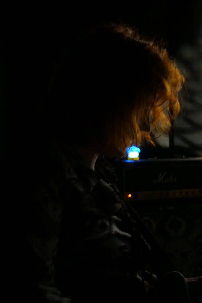 Nach diesem guten, wenn auch noch etwas verhaltenen, Einstieg folgte mit dem zweiten Stück ein deutlich rockigerer Jam und spätestens an diesem Punkt angelangt wurde klar, wie gut die vier Musiker zusammen funktionierten. Conni Maly wechselte gekonnt zwischen ihren melodischen Soli sowie banddienlicher Rhythmus-Arbeit, die dann nicht nur vom Gitarren-Meister, sondern auch dem der Effekt-Geräte, nämlich Ax Genrich komplementiert wurde. Als ein wahres und supergut funktionierendes Powerhouse stellten sich Dave Schmidt und Steff Bollack an Bass und Drums heraus, sodass sich dem Rezensenten diesbezüglich unwillkürlich Vergleiche mit Hawkwind zu deren besten Zeiten in den siebziger Jahren (mit Lemmy Kilmister am Bass und Simon King am Schlagzeug) aufdrängten. Somit konnte nicht nur die gesamte Band, sondern auch jeder einzelne Musiker deutlich punkten. Auch die dem anwesenden RockTimes-Team bisher am wenigsten von dem Quartett bekannte Frau Maly hinterließ auf ihren beiden Sechssaitern einen hervorragenden Eindruck.