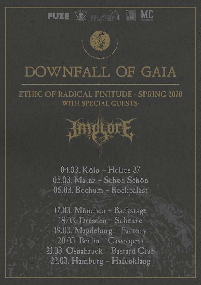 Downfall Of Gaia sind im März 2020 in Deutschland unterwegs und haben als Support Implore dabei.