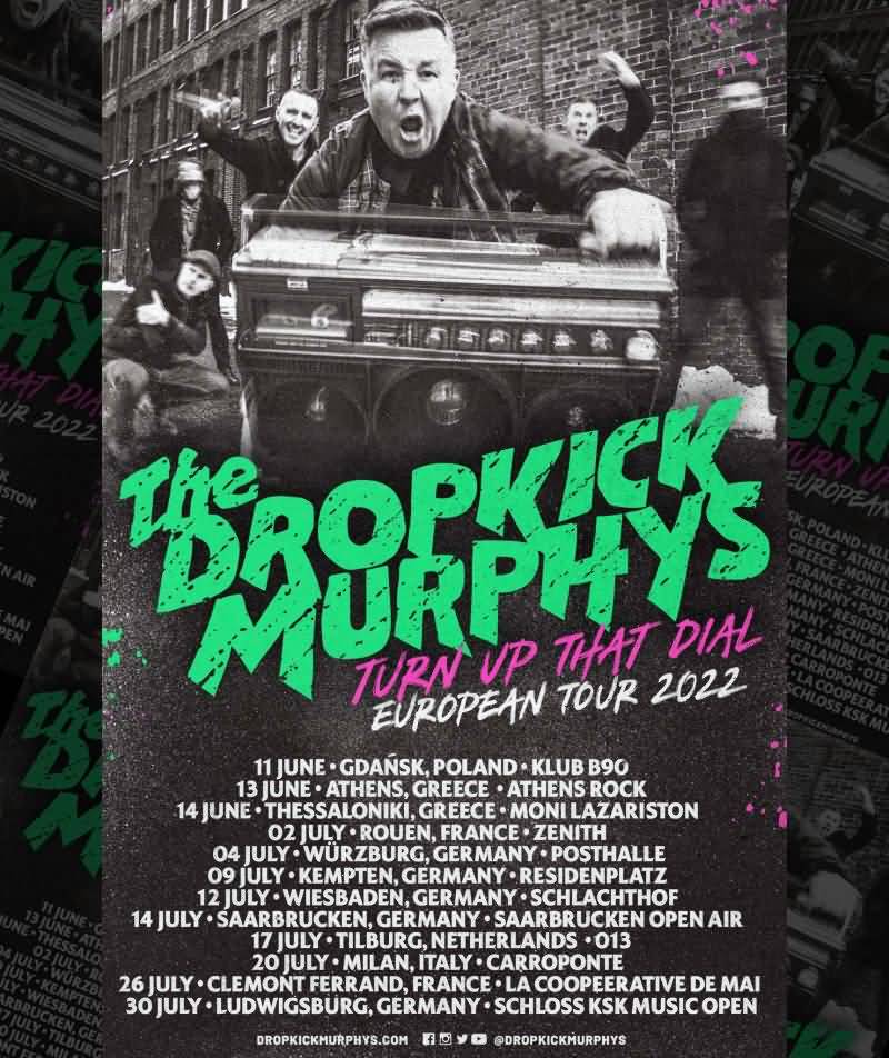 Zusätzlich zur von 2022 nach 2023 im Winter stattfindenden Tour spielen die Dropkick Murphys im Sommer 2022 auf mehreren Festivals. Drumherum haben sie ein paar Hallentermine gelegt.
