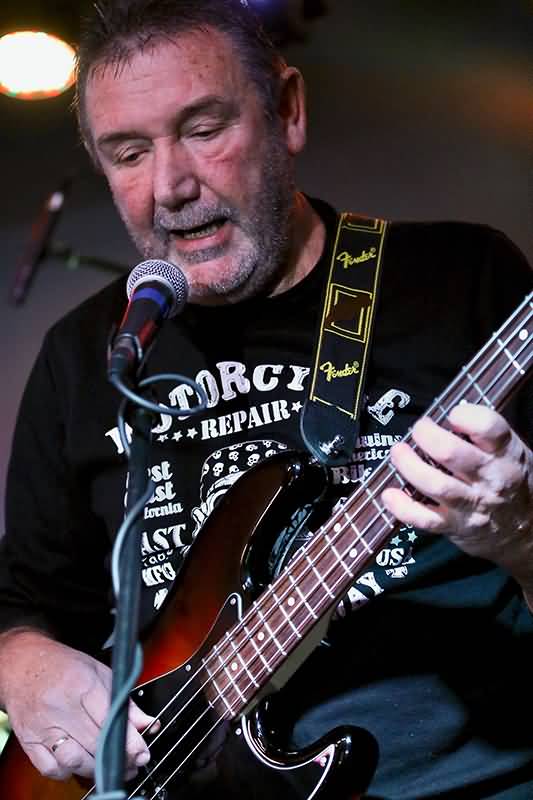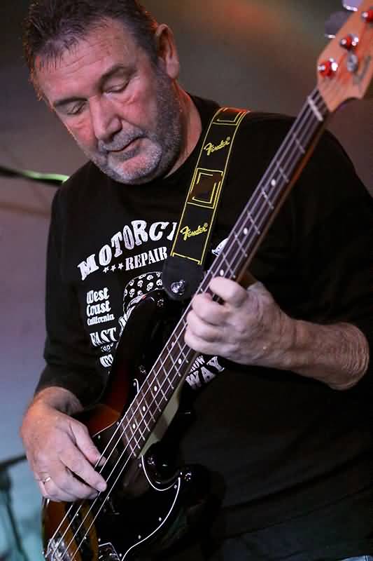 Jochen Eminger, ehemaliger Tourbassist von Gary Moore, zupft die dicken Tieftöner-Saiten. Wie aus den Bandinformationen hervor geht, konnte Jochen Eminger Jimi Hendrix bei seinem letzten Auftritt auf Fehmarn live erleben.
