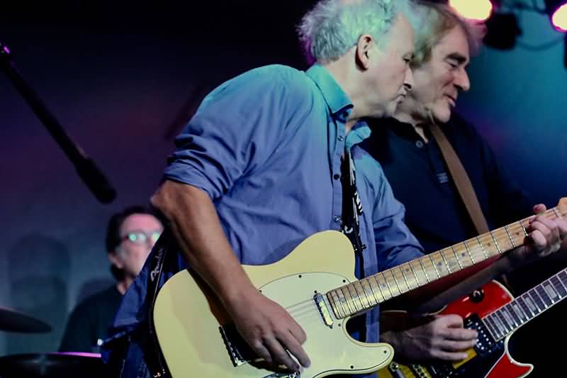 Beide zeigten, wie viel Fantasie sie auf den sechs Saiten ihrer Arbeitsgeräte in formidable Läufe über das Fretboard verwirklichten. Da gab es wechselseitige Statements der rockigen wie auch verträumten Töne. Martin Krassenberg beeindruckte mit dem einen oder anderen feinen Bottleneck-Einsatz. Beide Gitarristen glänzten durch ihre individuelle Spielweise und bewegten sich auf gemeinsamem Terrain, wenn es um den öfter eingesetzten Twin-Sound ihrer Sechssaiter ging. Daumen hoch für des Gitarren-Gespann.