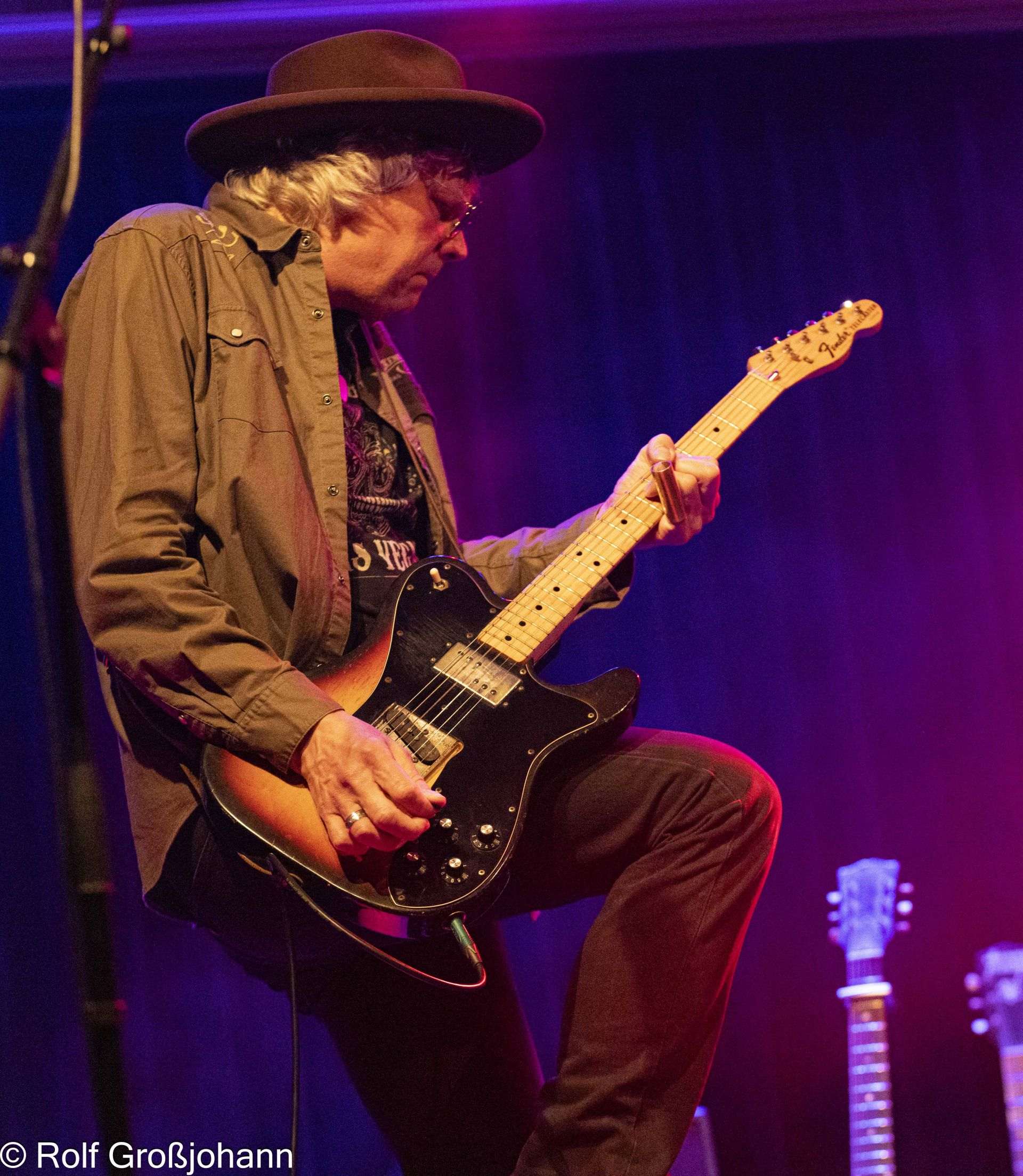 Die Musiker wurden mit einem herzlichen Applaus begrüßt und begannen mit einem Blues, in dem sich Martin gleich das Slideröhrchen aufgesteckt hat, sehr gut. "Stupid Girl" vom Album "Road To Riley’s" ist auch ein Blues, hier lieferte Martin ein rockiges Solo und ging dann in einen schönen Boogie über, um schließlich wieder im Blues-Thema zu enden. Klasse gemacht!