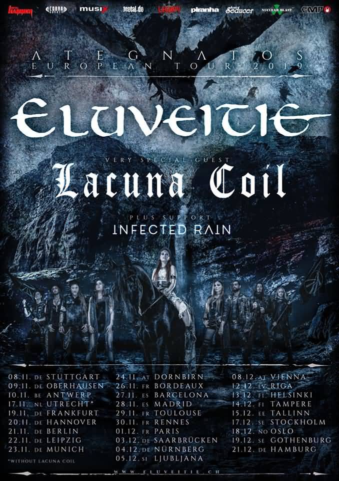 Im November gehen Eluveitie auf Tour, dabei sein werden als Special Guest diei italienischen Gothic/Alternative Rocker Lacuna Coil und die Nu Metal-Newcomer Infected Rain.