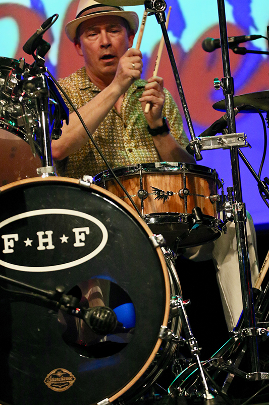 Für die zuletzt genannte Nummer wechselte Fat Harry zur schwarzen Dobro und griff zum Bottleneck. Die Slide-Sounds verbreiteten traditionelles Blues-Feeling in der Location und für "Slippin' And Slidin'" von Johnny Littlejohn wanderte das Bottleneck ein weiteres Mal über die Saiten einer schneeweißen E-Gitarre. Im Medley mit "Tell Me" gab es in dieser Chicago South Side-Nummer mächtig viel Jacco van den Heuvel-Drum-Groove und jazzige E-Piano-Läufe von David G. Franco. Highlight!