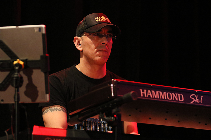 Häufig zog David G. Franco nicht nur durch seine sphärischen Klänge die Aufmerksamkeit auf sich. Wenn er auf den schwarzen und weißen Tasten der Hammond loslegte, war Faszination angesagt. Beim E-Piano stand häufig der Jazz im Vordergrund der Alleingänge.