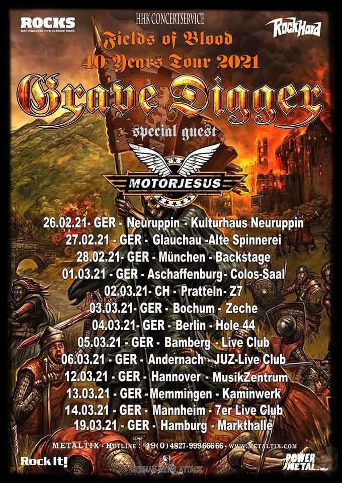 Grave Digger gehen 2021 mit ihrer neuen Scheibe "Fields Of Blood" auf Tour. Gleichzeitig feiern sie ihr 40. Jubiläum (Gründungsjahr 1980)