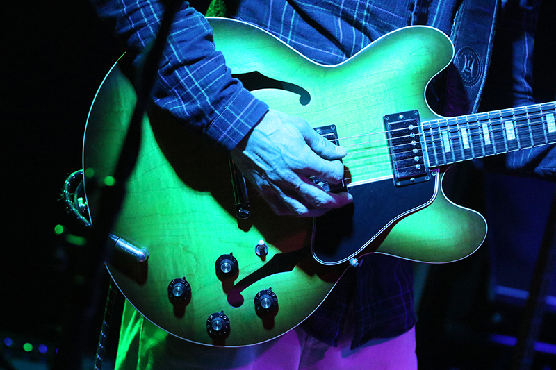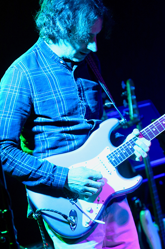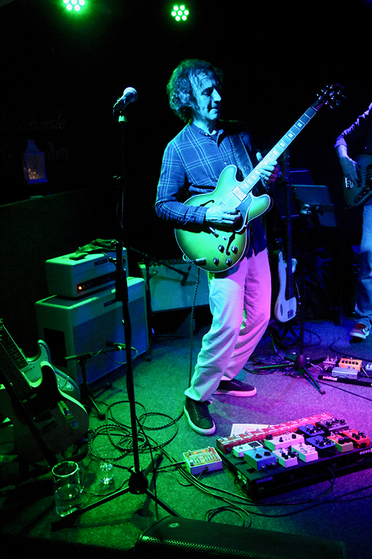Dem klasse Konzertbeginn folgte das Stück "Telefunk". Dafür wechselte der großartige Gitarrist zu seiner Fender Telecaster und Guido Wilbers' Satz: »[…] For the next song I’m gonna change my guitar. […]« sollte zum Running Gag des Abends werden. Zu treibenden Drum-Beats mit Cowbell-Einsatz und einem energisch von Luciën Matheeuwsen geslappten Bass, feuerte Guido Wilbers – auch im Stakkato-Modus – harte Funk-Riffs in die Location. Die Finger des Gitarristen wanderten dabei über das gesamte Fretboard. Highlight!