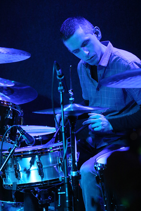 Wie Guido Wilbers während des Gigs kund tat, studierten er und Schlagzeuger Matthias Knorr gemeisam am Konservatorium in Arnhem (NL). »[…] 2010 beendete […]« der Drummer »[…] als jüngster Absolvent (im Alter von nur 20 Jahren) sein Studium und fing an, als professioneller Musiker und Schlagzeugdozent zu arbeiten. […]« Matthias Knorr bringt man in Zusammenhang mit z.B. der NDR-Bigband, Tini Thomsen Max Sax, Smoking Wolf, Groovation oder dem Philipp Sauer Quartett.