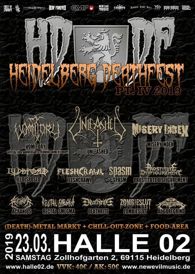 Das Heidelberg Deathfest 2019 findet am 23.03.2019 in der Halle 02 statt und wartet mit Headlinern aus Schweden auf: Unleashed und Vomitory.
