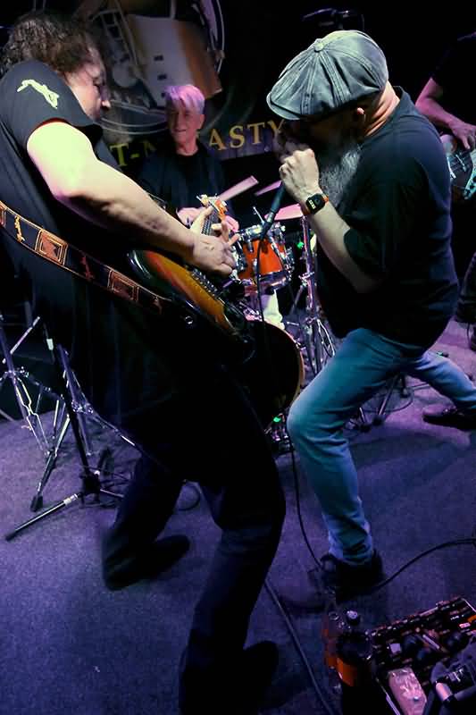 Der Hot’n’Nasty-Blues rockte geradeaus und war voller Power. Schon ziemlich früh lieferte Malte Triebsch eines seiner vom Wah Wah-Pedal unterstützten Soli ab und immer wieder begab sich der hervorragende Gitarrist für seine Alleingänge an den Bühnenrand. Einmal stattete er dem Publikum einen Besuch ab. Nicht selten versah Malte Triebsch den Ton seiner Gitarre mit Effekten wie zum Beispiel in "So Much Better Than This". Bei "Catch Us All" bewegte man sich durch gekonntes Sechssaiter-Riffing in die Nähe des Rock’n’Roll, der sich in "Steamroller" zur vollen Blüte entwickelte. Schön war es, dabei eine gewisse Boogie-Würzung zu vernehmen.