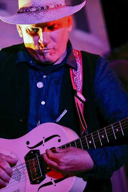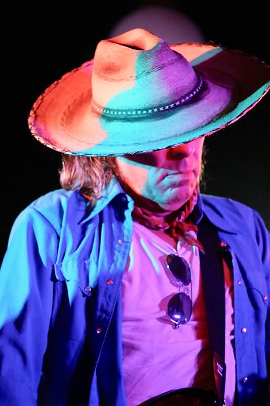 Der Auftritt war bereits in vollem Gang, als einem auffiel, dass der Frontmann noch nicht einmal zum Bottleneck gegriffen hatte. Das Warten hatte dann endlich ein Ende und Jeffrey Halford slidete gleich ein Solo-Intro. Viel deutlicher stand jetzt der Blues im Vordergrund und der entwickelte sich auch noch zu einer zum Teil vehement rockenden Version. Einige Tracks wurden jetzt vom Sound der Slide-Gitarre geprägt und der Überflieger dieser Phase war eindeutig das vom Album "Lo-Fi Dreams" stammende "Elvis Shot The Television". Zum guten Groove lieferte Jeffrey Halford auch noch eine Tanzeinlage ab. Der Hammer, dieses Stück!