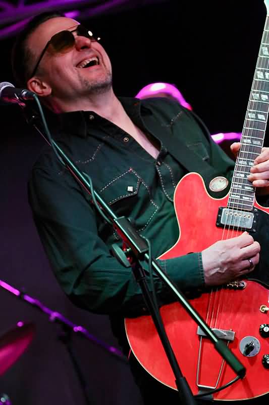 Mit einem instrumentalen Opener begrüßten zunächst The Electric Blues All-Stars das erwartungsvolle Publikum und etwas später gesellte sich Kai Strauss zu seiner Combo. Er schickte auf der roten halbakustischen Gibson einen ersten Solo-Gruß in die Runde und Paul Jobson kreierte auf den schwarzen und weißen Tasten seiner Hammond Orgel, inklusive Leslie-Lautsprecher, bereits zu Beginn des Gigs herrlich-bluesige Klänge.