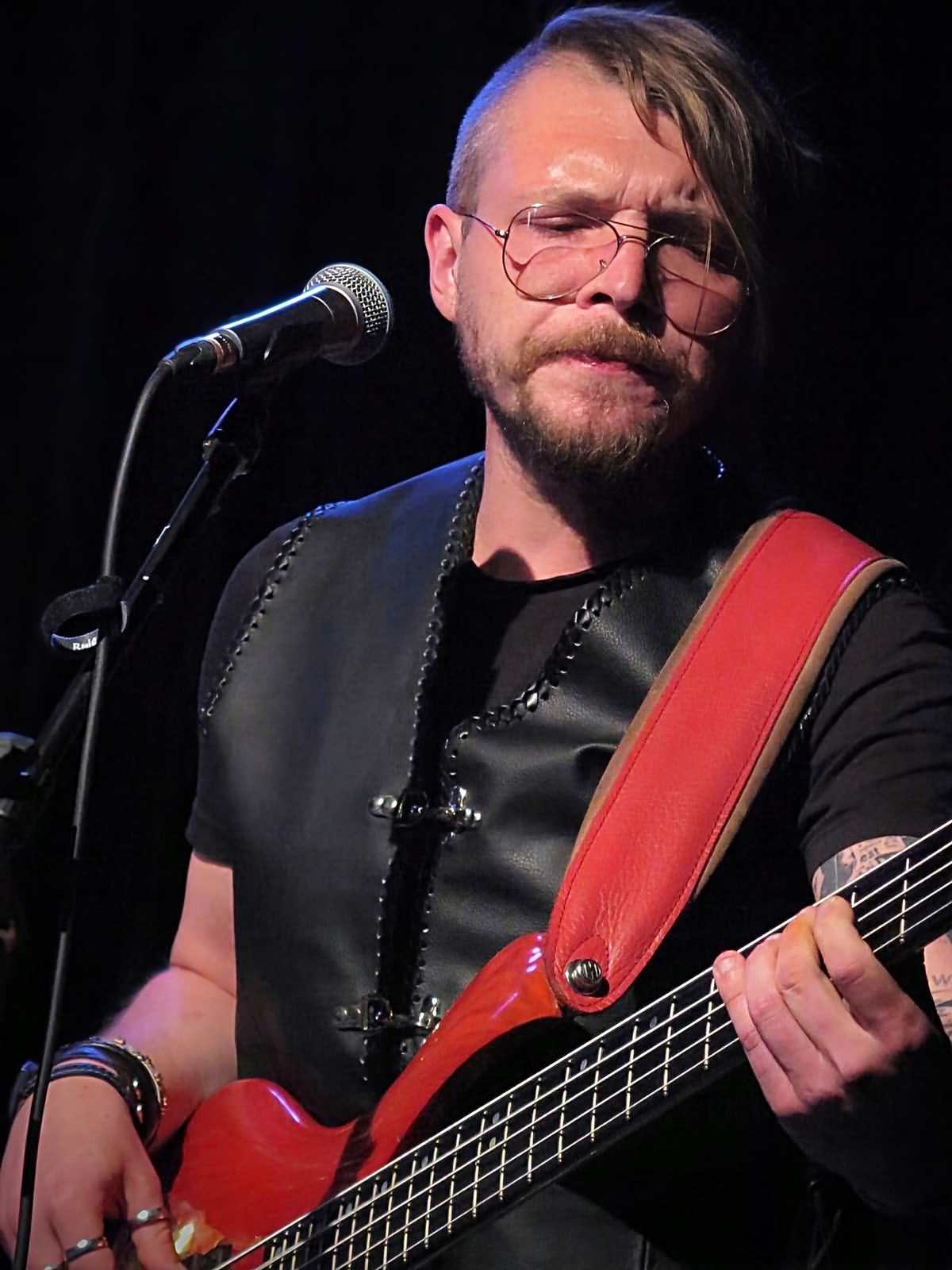 Jess Hayes ist als einziger Gast des Abends nicht am Gegenstand der Party beteiligt, weiß aber unverzüglich mit druckvoller Holzspänenröhre zu überzeugen. Es ist kein Zufall, dass alle 'Friends' dieser Veranstaltung singen, denn bei allen diesbezüglichen Fortschritten ist Krissy Matthews Kernkompetenz eindeutig das Saitenspiel, welches von harten, kernigen Riffs bis zu lyrischer Ästhetik reicht. Dargeboten wird das Ganze auf einer an diesem Abend passend stilecht glitzernden Sandberg-Gitarre aus Braunschweig.