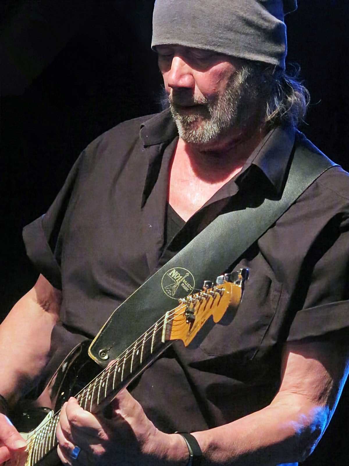 Und dann erfolgt unverzüglich der Startschuss in ein netto 3 ½ stündiges Vergnügen mit dem Opener "Level With The Devil" vom bereits erwähnten "Monster"-Album. Sein rhythmisches Rückgrat bildet dabei der Belgier Gerry Reynders am Schlagwerk und der gebürtige Pole Slawek Semeniuk am Bass, beide interessanterweise mit Jazzaffinität und Rob Tognoni-Vergangenheit, was auf den ersten Blick nicht schlüssig erscheint. Es soll sich aber über die lange Laufstrecke des Abends herausstellen, dass beide Garanten dafür sind, immer eine Mehrdimensionalität des musikalischen Vortrags zu gewährleisten. Dabei muss bedacht werden, dass dieses Programm mit allen Beteiligten kaum ausgiebig geprobt worden sein kann. Dieser Umstand wiederum passt sehr gut zu dem Stil, der aus meiner Sicht die Signatur der Musik eines Krissy Matthews ausmacht – der Hibbel(blues)rock.