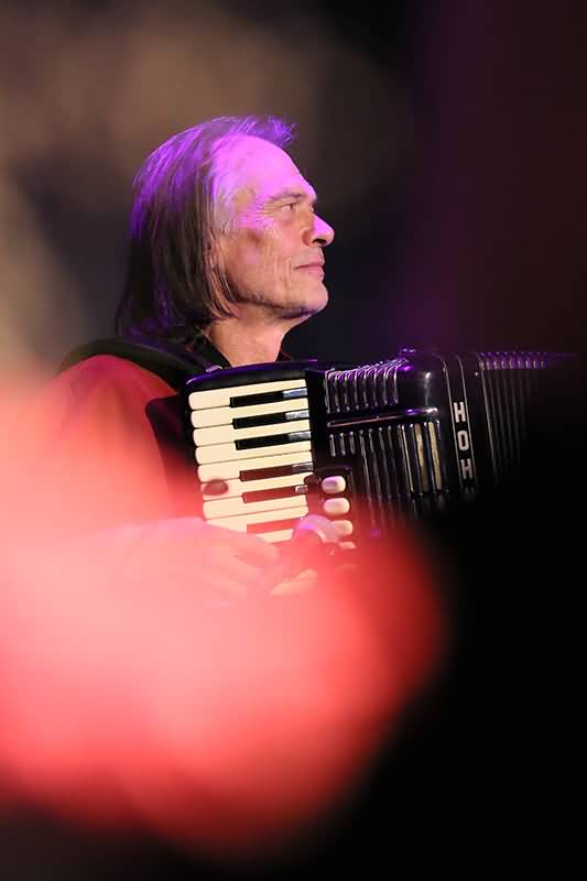Die Frank Schut-Komposition "View Up To The Sky" entpuppte sich als eine verdammt lockere, ja geradezu coole Nummer mit einem tollen Saxofon-Solo von Dave Tchorz, der hier den jazzigen Weg in luftige Höhen wählte. Sinnbildlich hatte Dave Tchorz alle Hände voll zutun, denn er beeindruckte nicht nur auf dem Tenor- beziehungsweise Sopran-Saxofon, sondern setzte auch noch das Akkordeon sowie die Melodica ein. Respekt! Er war mitverantwortlich für die Gestaltung verschiedener Stimmungen. Bei "Gypsy Tune" war das Akkordeon nicht nur für das gefühlvolle Song-Intro zuständig und nach einem klasse gesetzten Rhythmuswechsel groovte sich Lanko auf den swingenden Jazz ein. Die beiden Gitarristen lieferten einen sauberen Twin-Sound ab und in "Innocence Is Sleeping" erhielt Klaus Neuenhaus für sein wunderschön melodisches Solo Szenenapplaus.