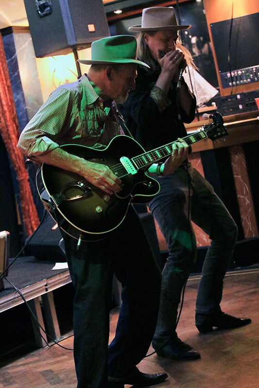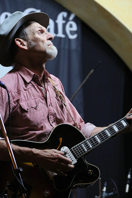Im flotten Tempo blies Little Hat wieder Blues-Wind unter die Hutkrempe und bei der Interpretation von Hound Dog Taylors "Gimme Back My Wing", natürlich mit Bottleneck-Einsatz, gab es den Konzert-Höhepunkt bereits im ersten Teil des Gigs. Weil die spezielle Slide-Gitarre schon einmal geschultert war, wurde gleich noch "Cutie Named Judy" hinterher geschoben. Zwanzig Minuten Pause.
